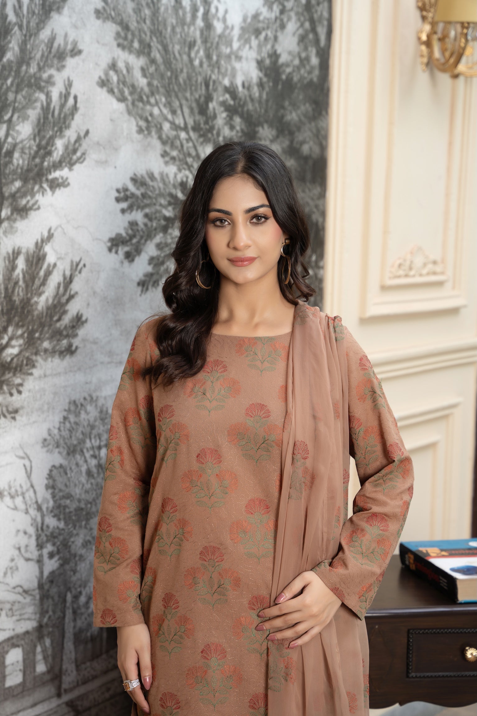 1.Dyed Lawn Karandi Allover Embroidered Shirt