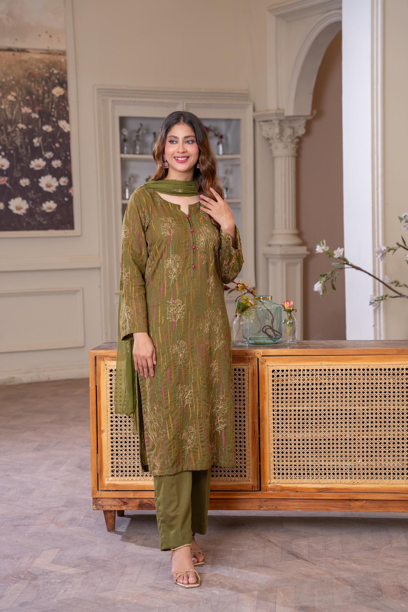 - Dyed Lawn Karandi All over Embroidered Shirt