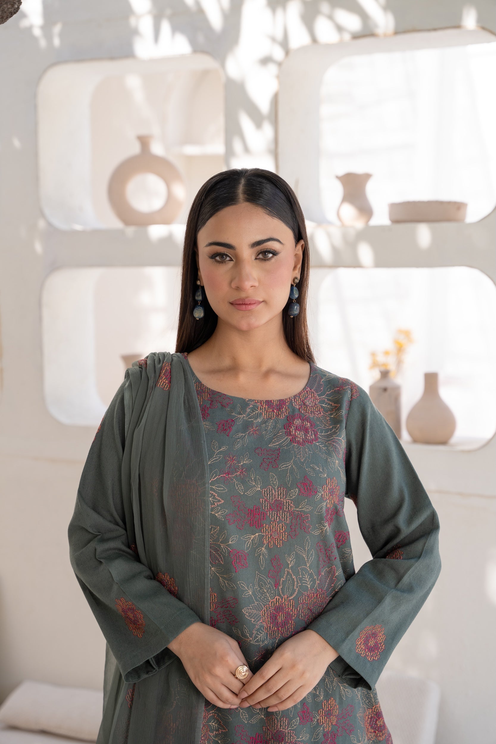 2. Dyed Winter Karandi Embroidered Back & Sleeves
