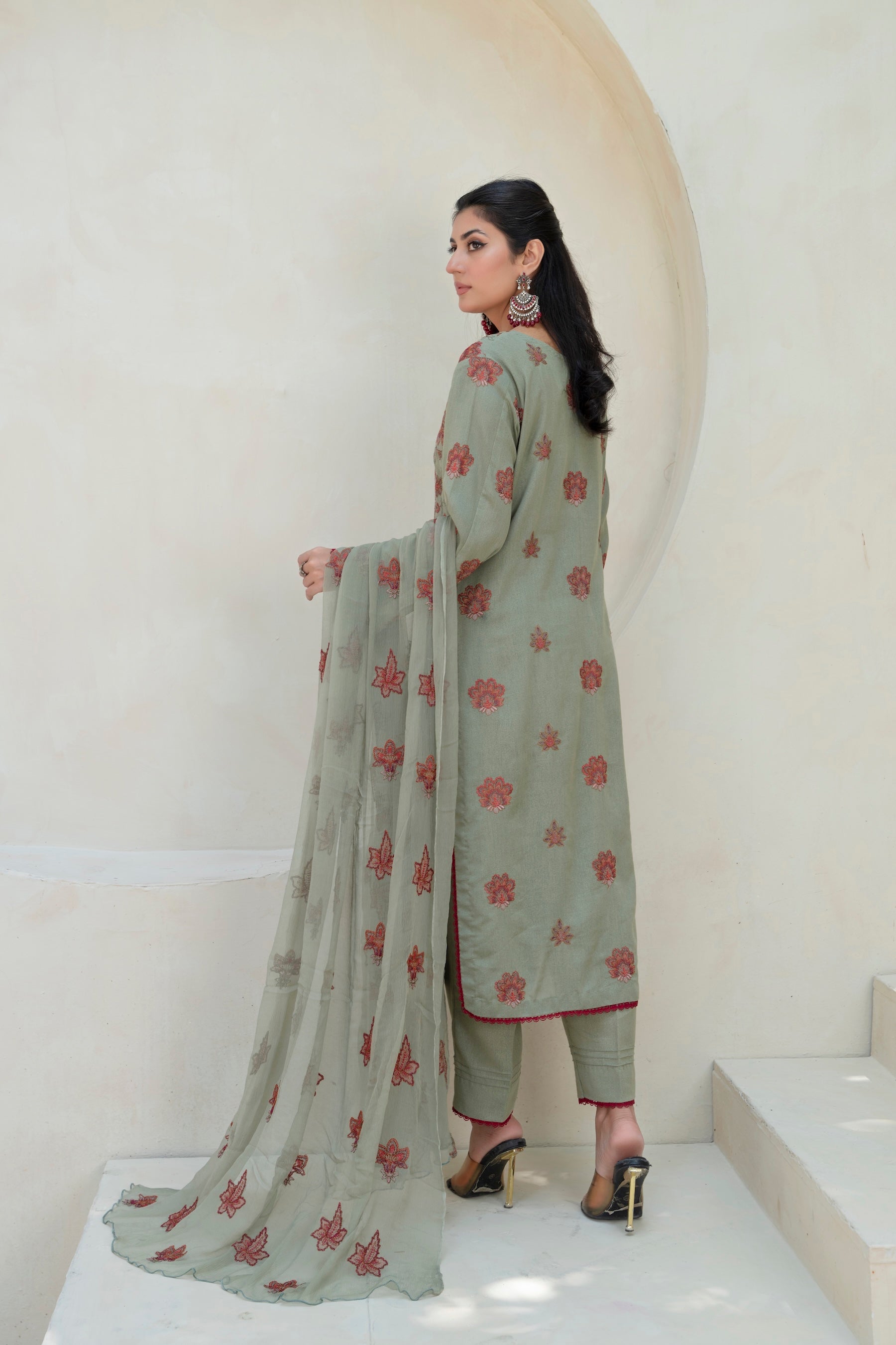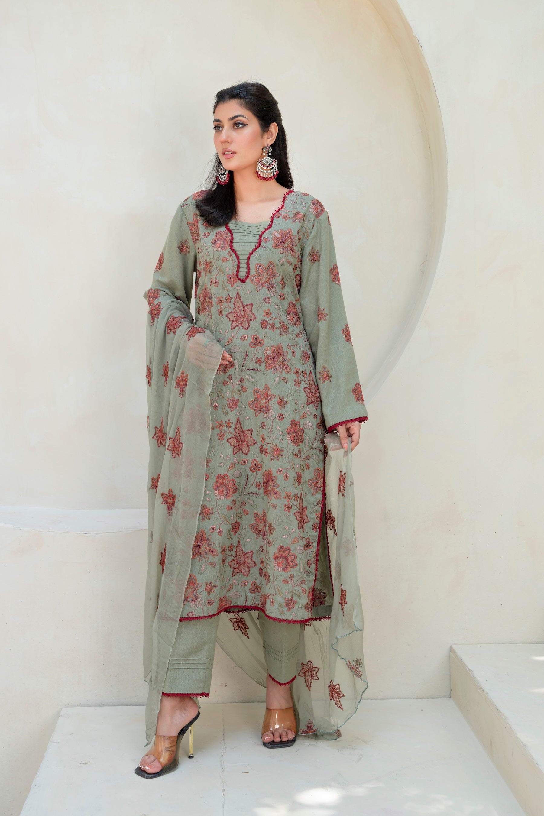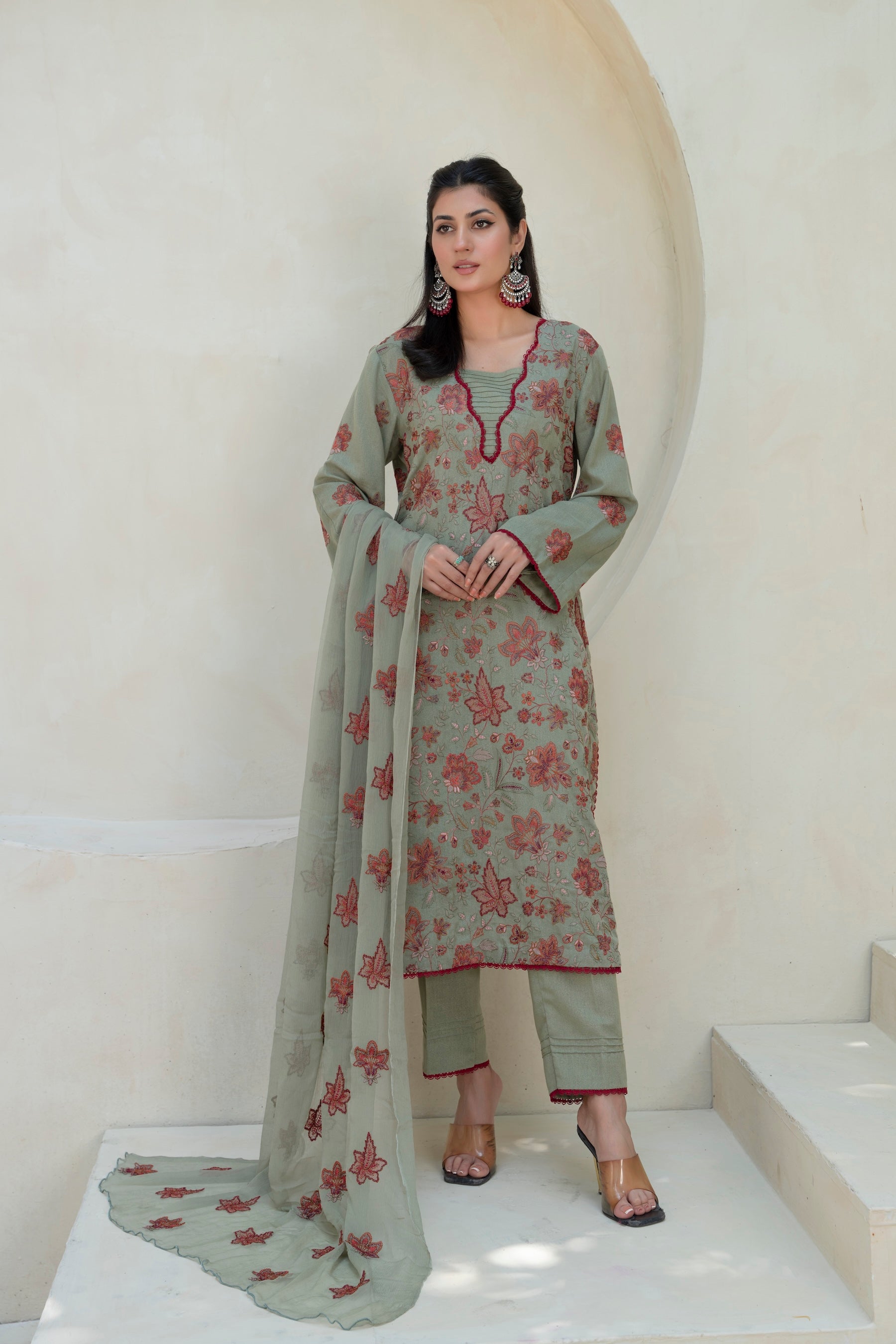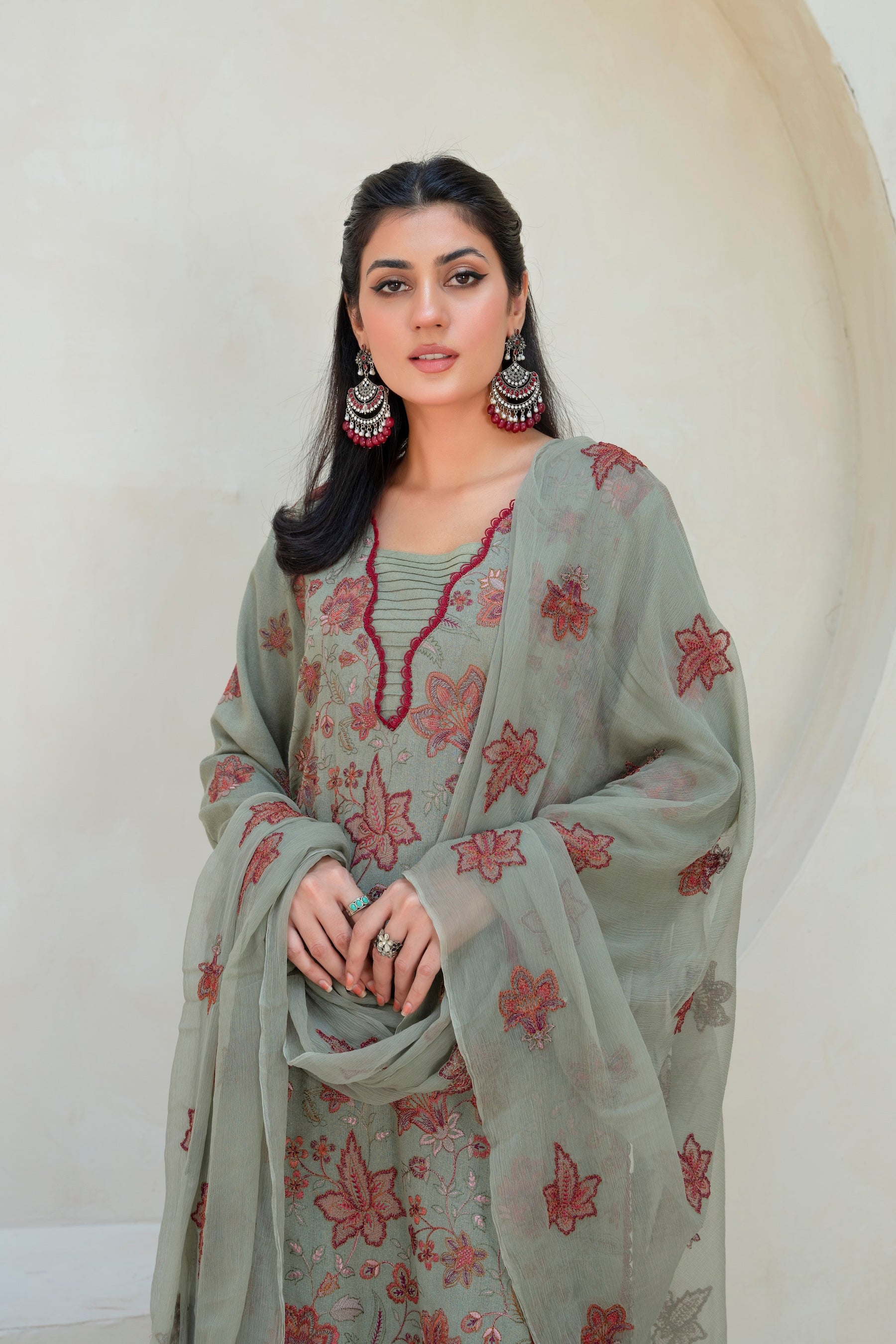 3. Dyed Pure Bamber Chiffon Embroidered Dupatta