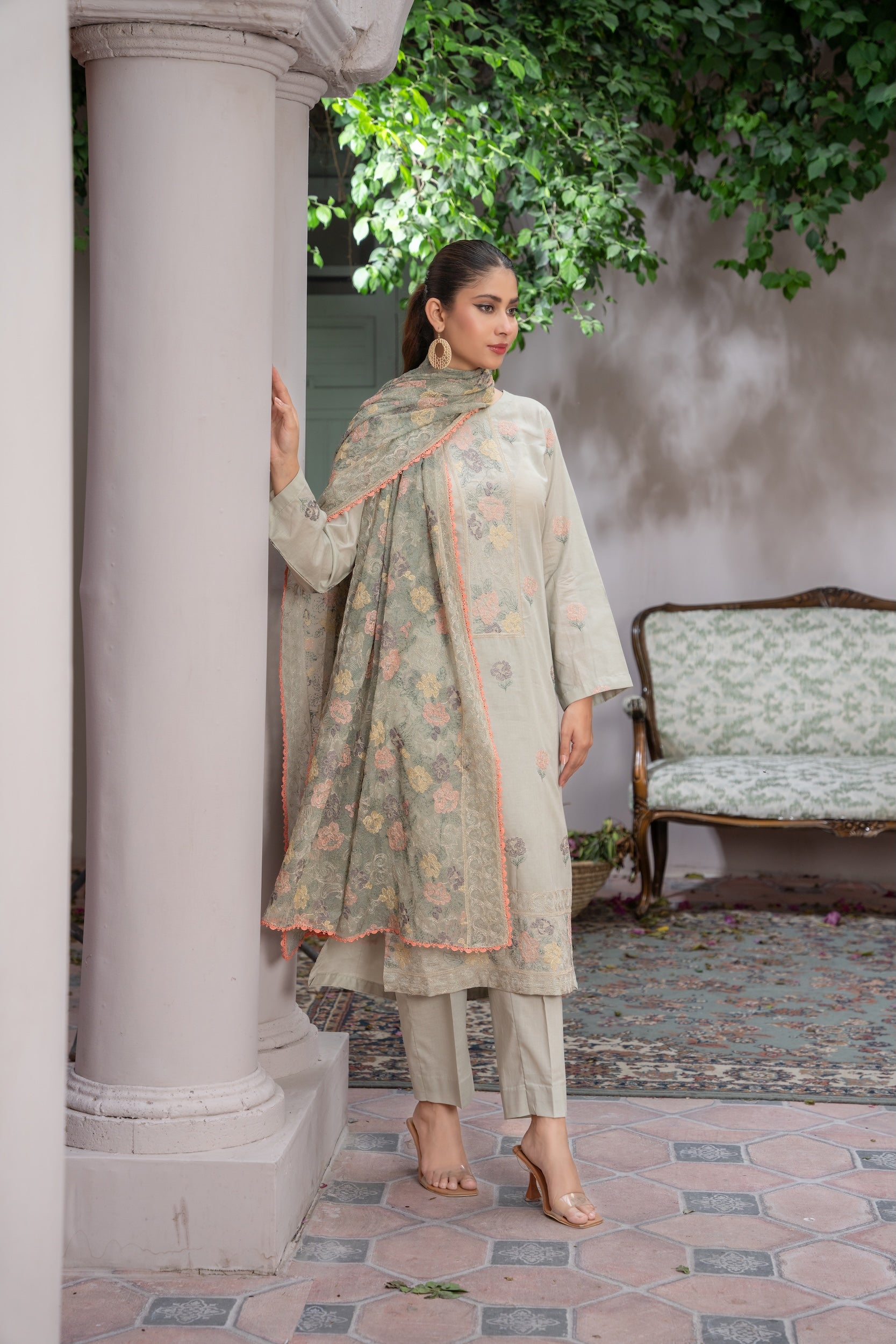 - Dyed Embroidered Bamber Chiffon Dupatta