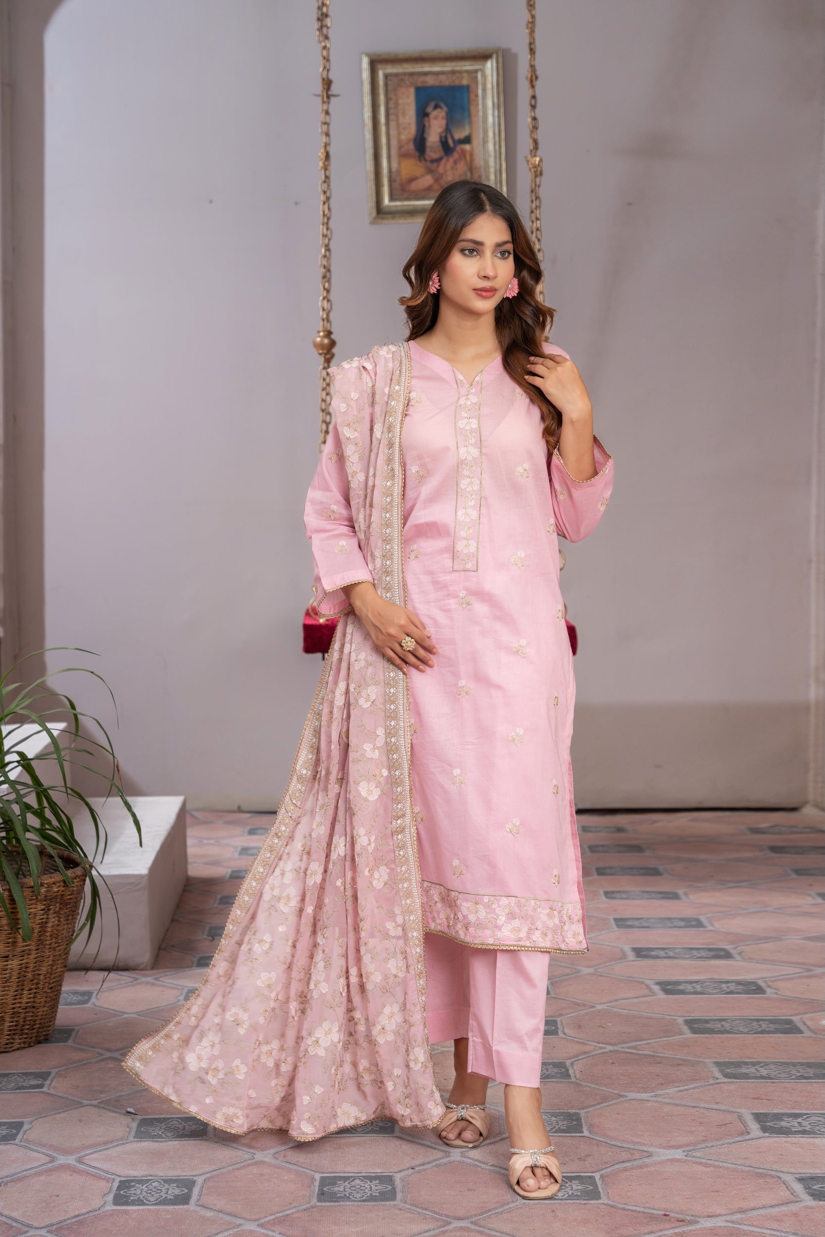 - Dyed Embroidered Bamber Chiffon Dupatta