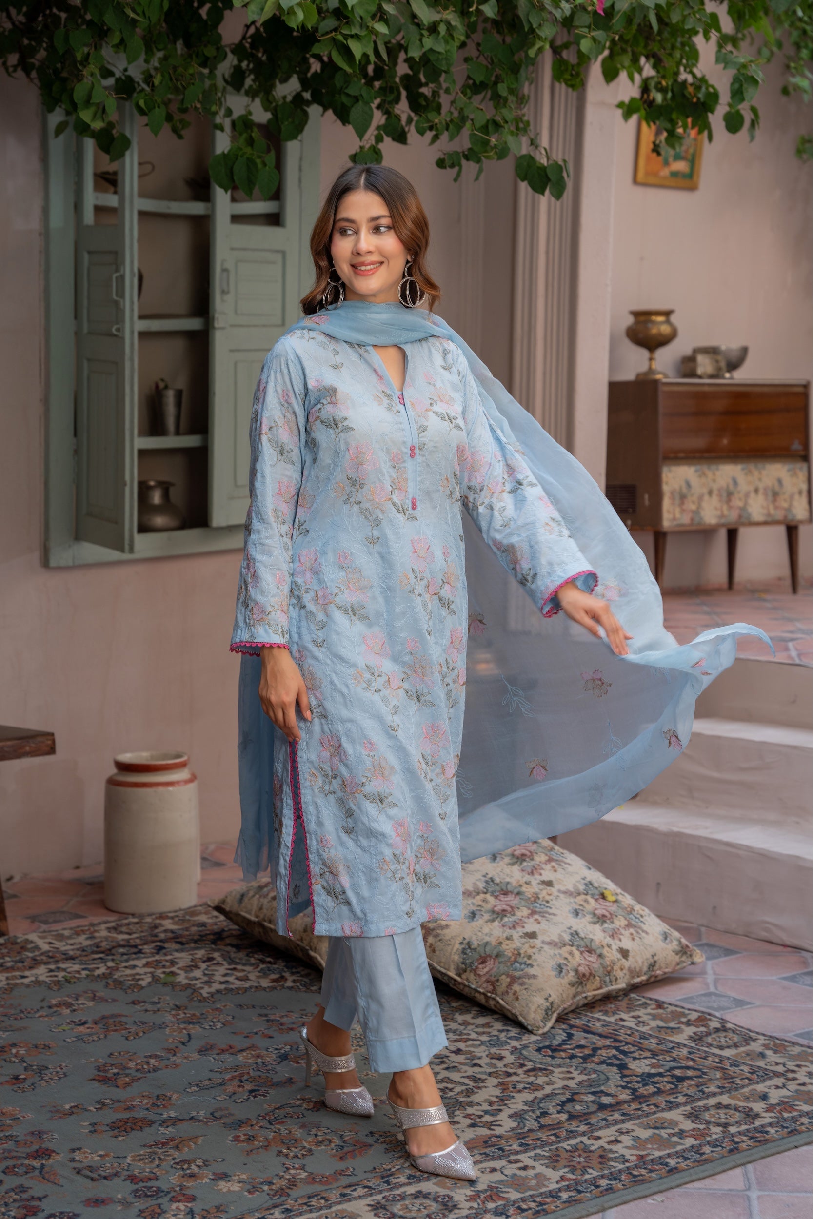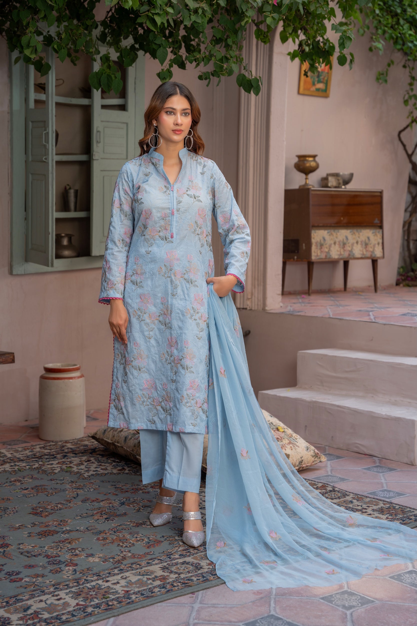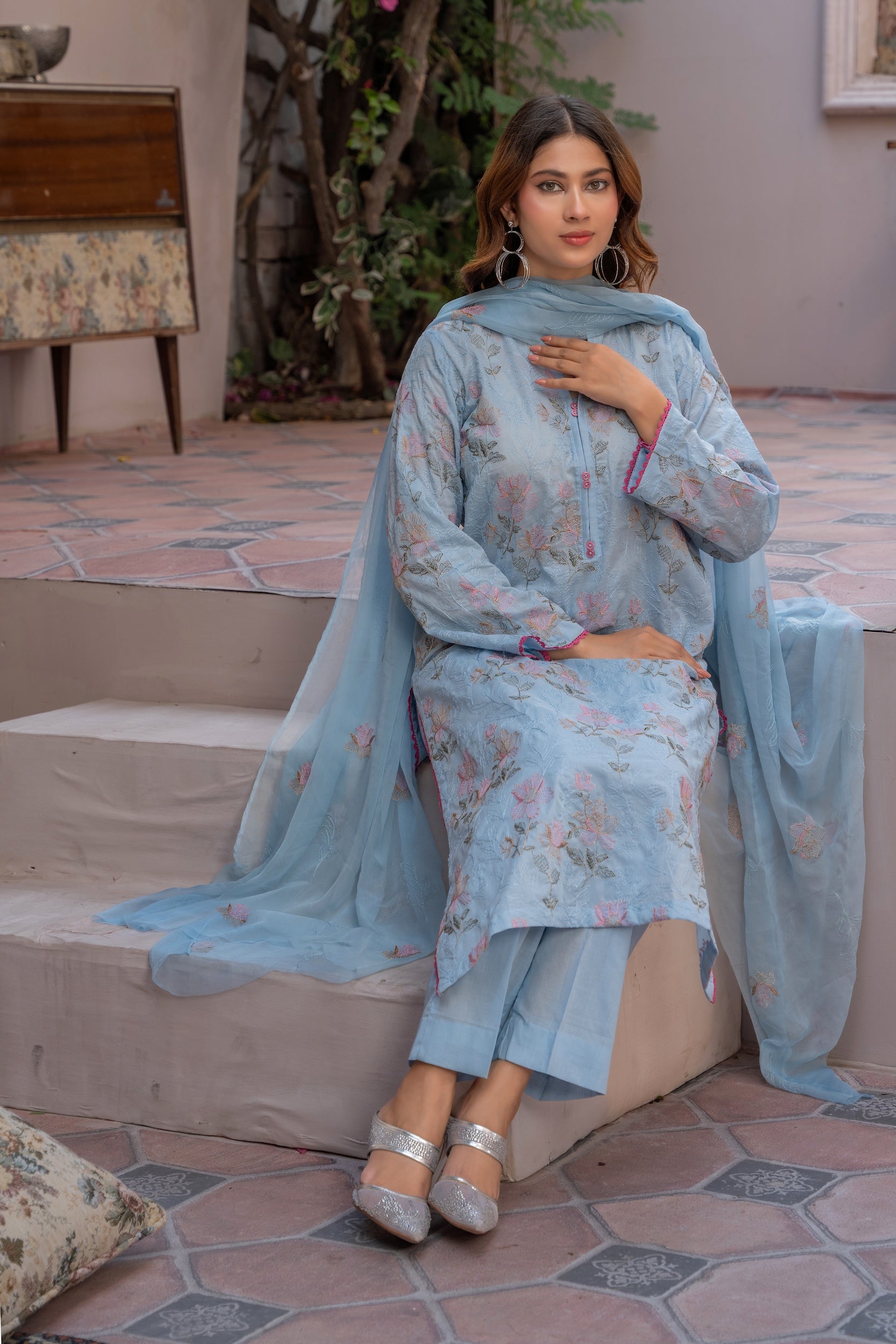 - Dyed Lawn Embroidered Shirt (3 Mtr)