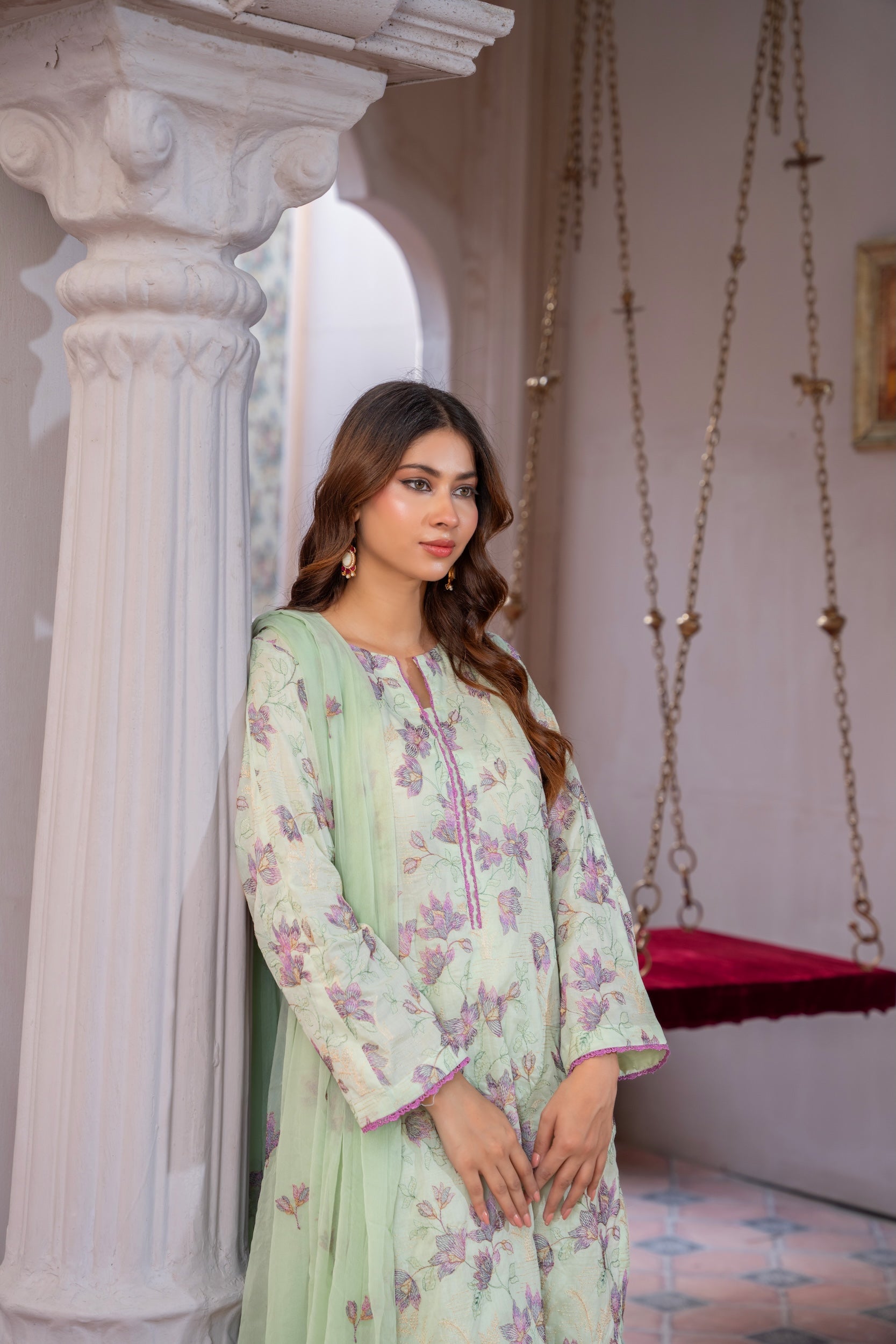 - Dyed Emb Bamber Chiffon Dupatta ( 2.5 Mtr)